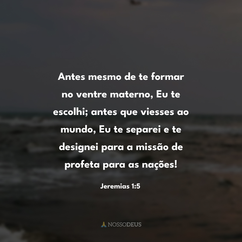 Antes mesmo de te formar no ventre materno, Eu te escolhi; antes que viesses ao mundo, Eu te separei e te designei para a missão de profeta para as nações!