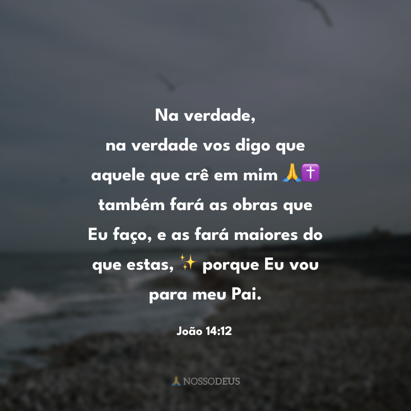 Na verdade, na verdade vos digo que aquele que crê em mim 🙏✝ também fará as obras que Eu faço, e as fará maiores do que estas, ✨ porque Eu vou para meu Pai.