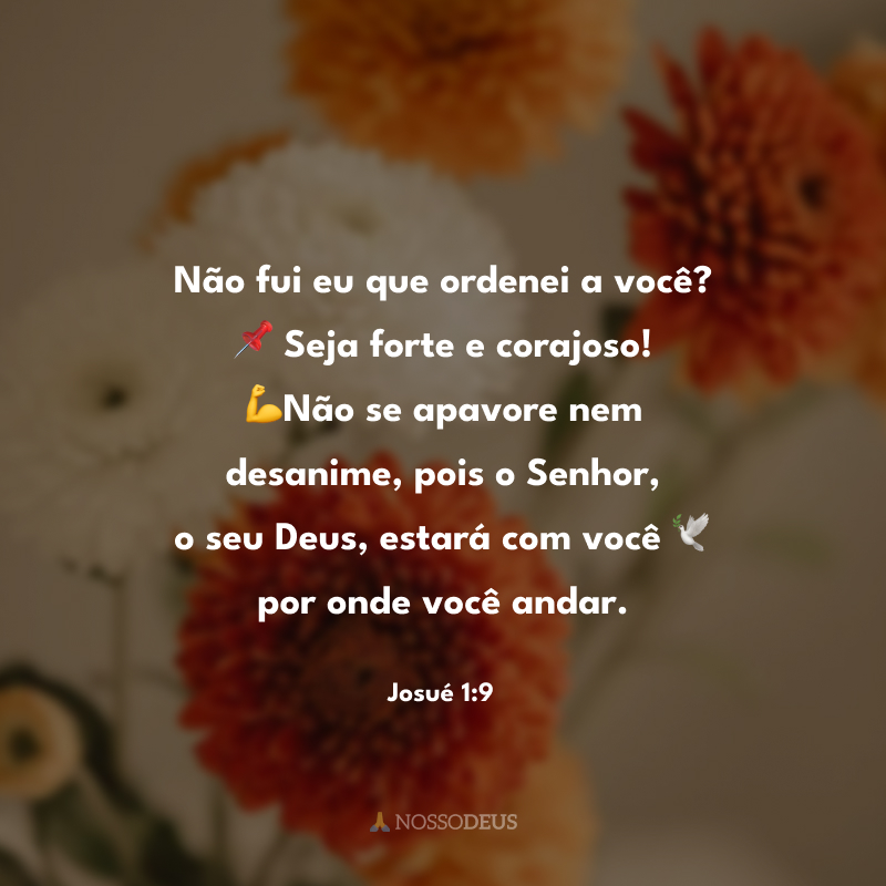 Não fui eu que ordenei a você?📌 Seja forte e corajoso! 💪Não se apavore nem desanime, pois o Senhor, o seu Deus, estará com você 🕊 por onde você andar.