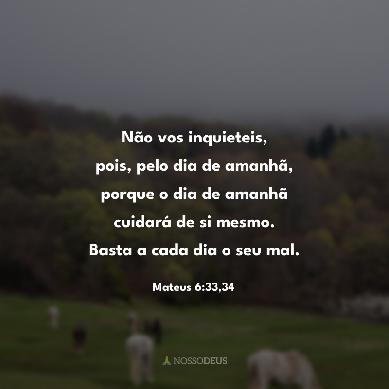 Não vos inquieteis, pois, pelo dia de amanhã, porque o dia de amanhã cuidará de si mesmo. Basta a cada dia o seu mal.