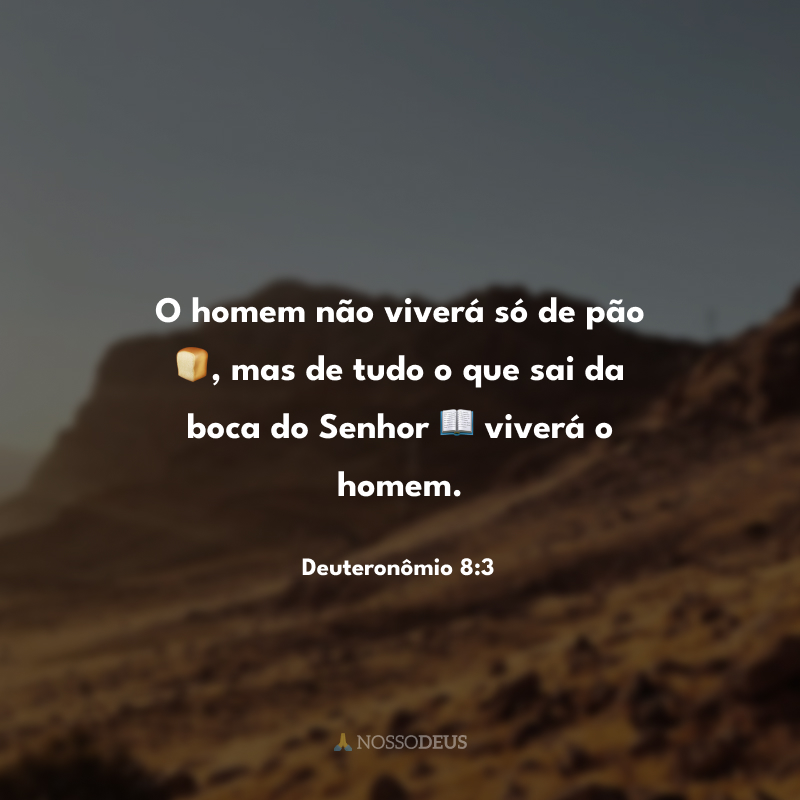 O homem não viverá só de pão🍞, mas de tudo o que sai da boca do Senhor 📖 viverá o homem.