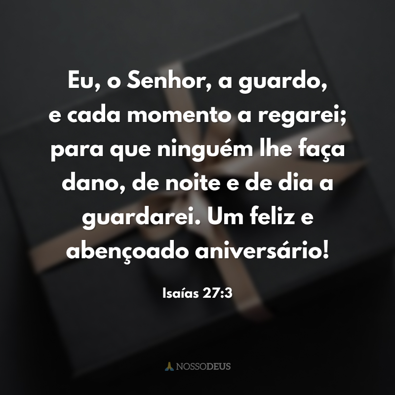 Eu, o Senhor, a guardo, e cada momento a regarei; para que ninguém lhe faça dano, de noite e de dia a guardarei. Um feliz e abençoado aniversário!