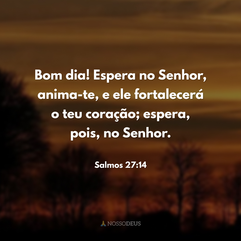 Bom dia! Espera no Senhor, anima-te, e ele fortalecerá o teu coração; espera, pois, no Senhor.
