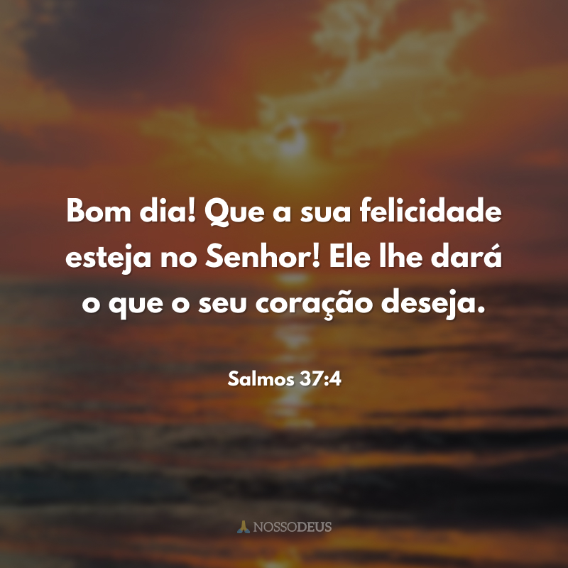 Bom dia! Que a sua felicidade esteja no Senhor! Ele lhe dará o que o seu coração deseja.