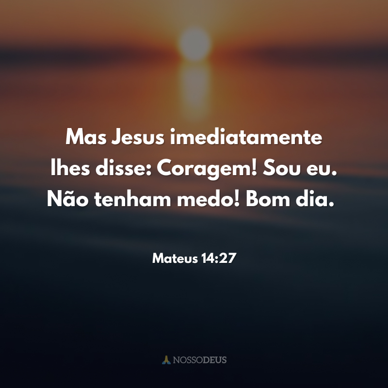 Mas Jesus imediatamente lhes disse: Coragem! Sou eu. Não tenham medo! Bom dia.