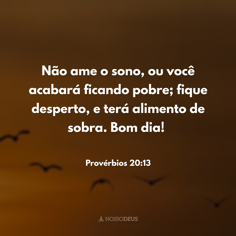 Não ame o sono, ou você acabará ficando pobre; fique desperto, e terá alimento de sobra. Bom dia!