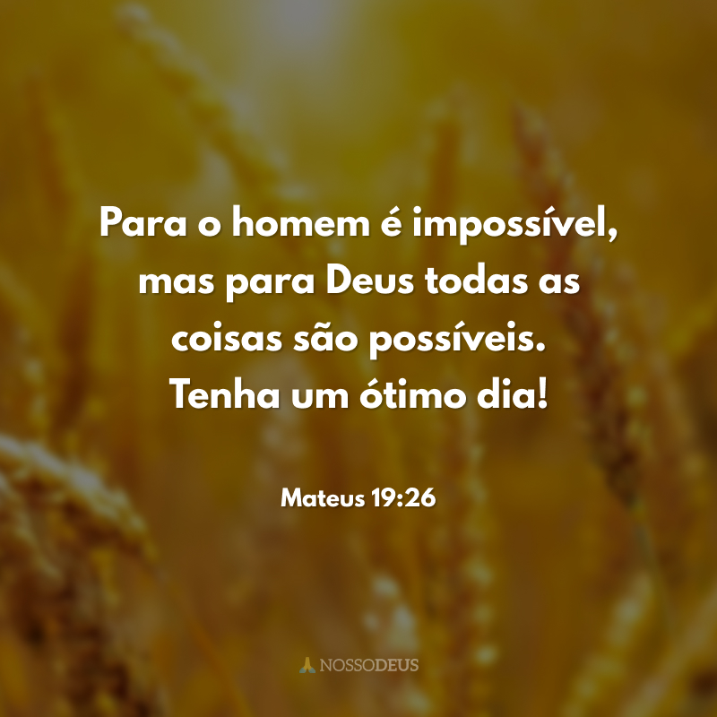 Para o homem é impossível, mas para Deus todas as coisas são possíveis. Tenha um ótimo dia!