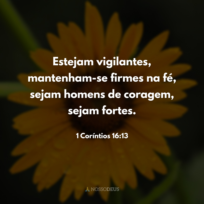 Estejam vigilantes, mantenham-se firmes na fé, sejam homens de coragem, sejam fortes.