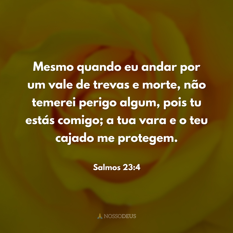 Mesmo quando eu andar por um vale de trevas e morte, não temerei perigo algum, pois tu estás comigo; a tua vara e o teu cajado me protegem.