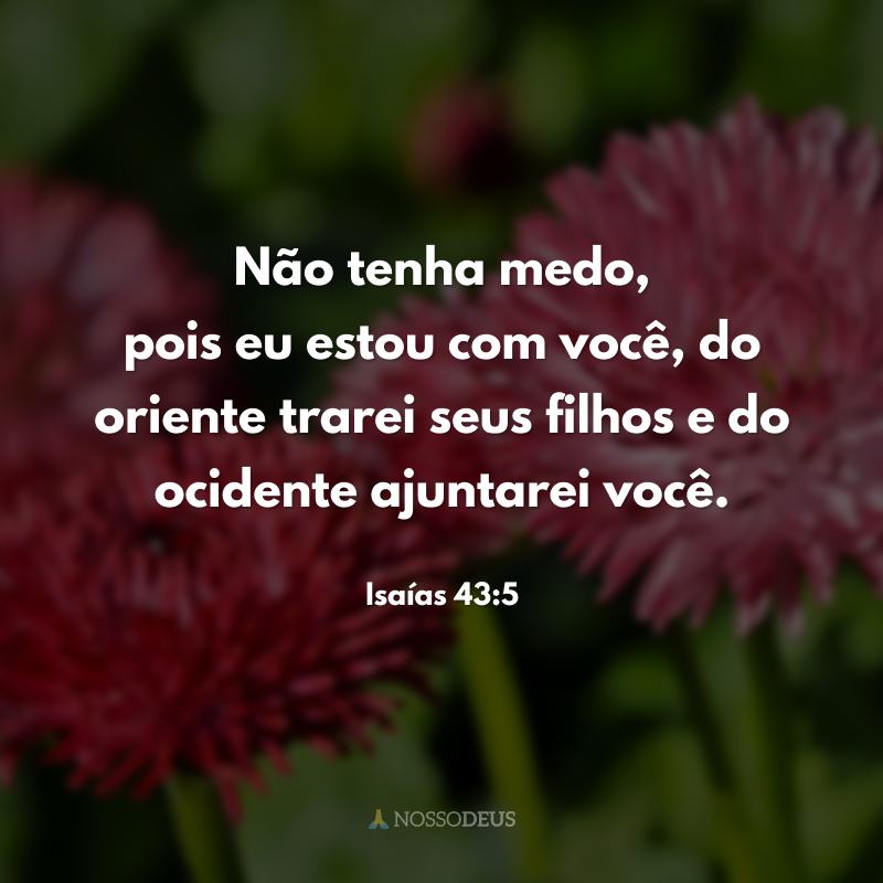 Não tenha medo, pois eu estou com você, do oriente trarei seus filhos e do ocidente ajuntarei você.