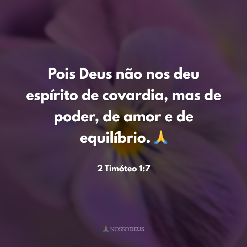 Pois Deus não nos deu espírito de covardia, mas de poder, de amor e de equilíbrio. 🙏