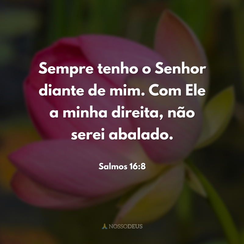 Sempre tenho o Senhor diante de mim. Com Ele a minha direita, não serei abalado.