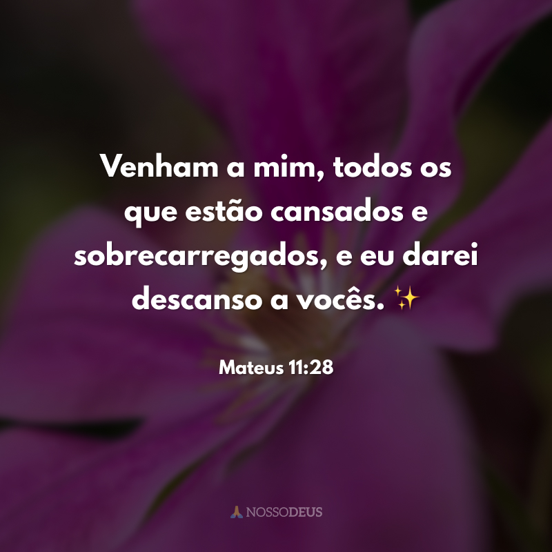 Venham a mim, todos os que estão cansados e sobrecarregados, e eu darei descanso a vocês. ✨