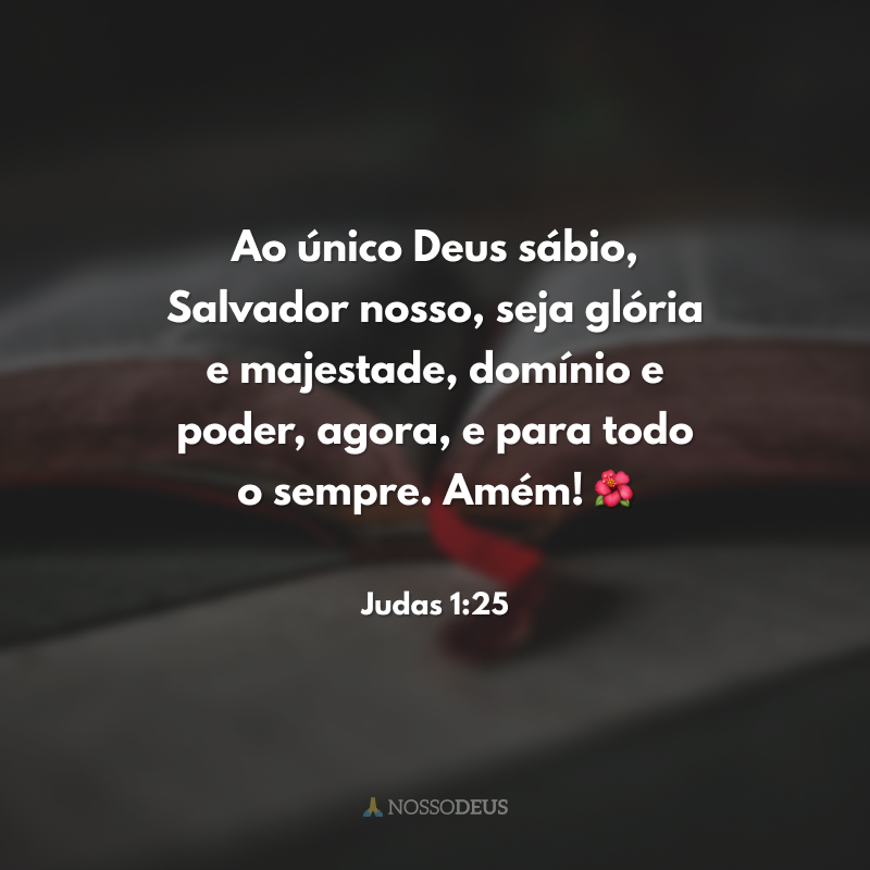Ao único Deus sábio, Salvador nosso, seja glória e majestade, domínio e poder, agora, e para todo o sempre. Amém! 🌺