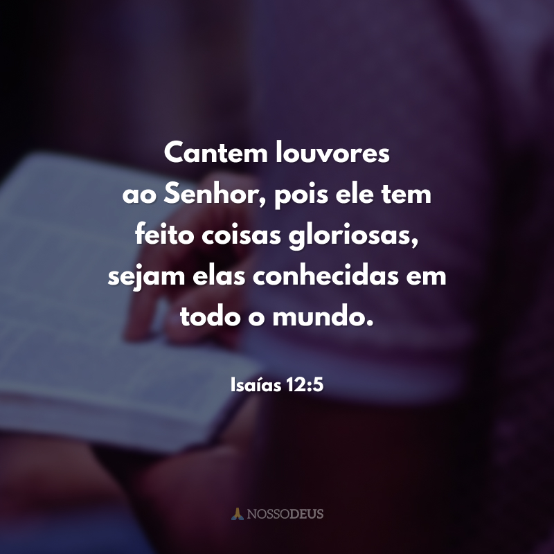 Cantem louvores ao Senhor, pois ele tem feito coisas gloriosas, sejam elas conhecidas em todo o mundo.