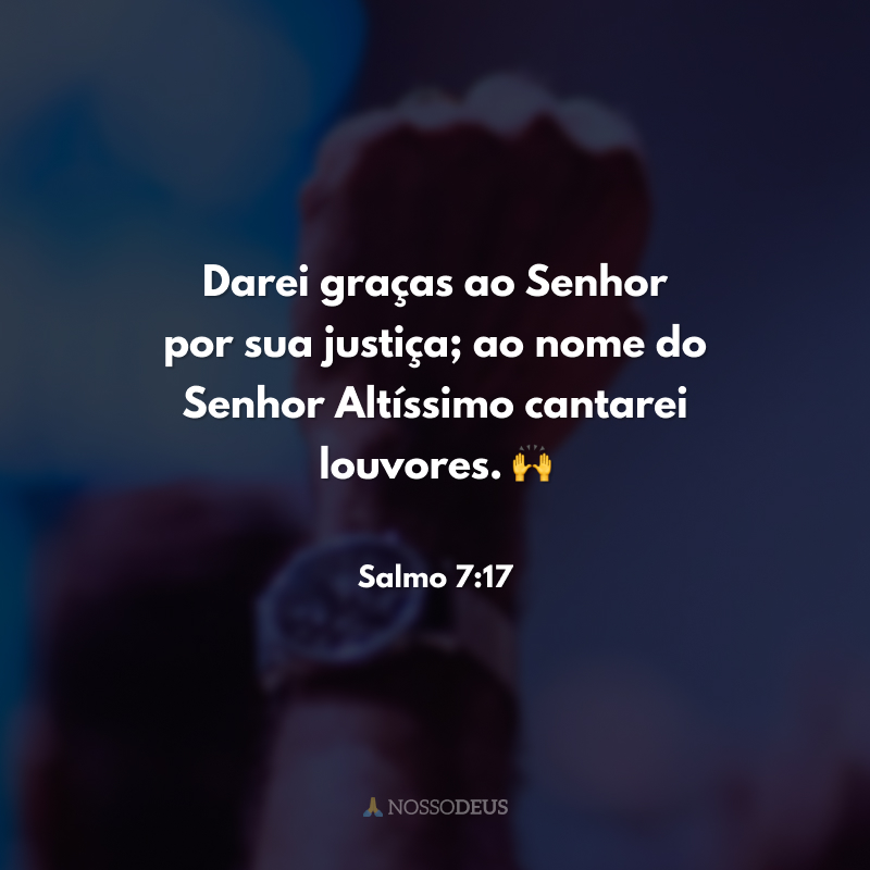 Darei graças ao Senhor por sua justiça; ao nome do Senhor Altíssimo cantarei louvores. 🙌