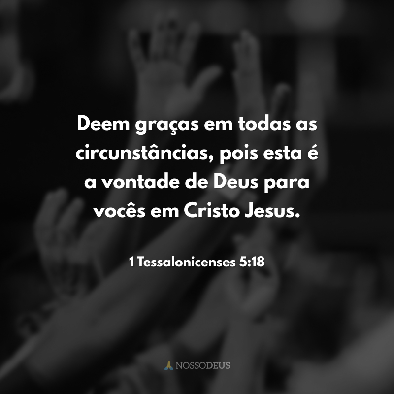 Deem graças em todas as circunstâncias, pois esta é a vontade de Deus para vocês em Cristo Jesus.