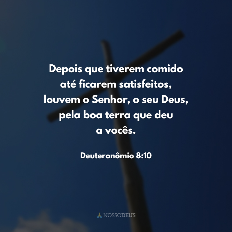 Depois que tiverem comido até ficarem satisfeitos, louvem o Senhor, o seu Deus, pela boa terra que deu a vocês.