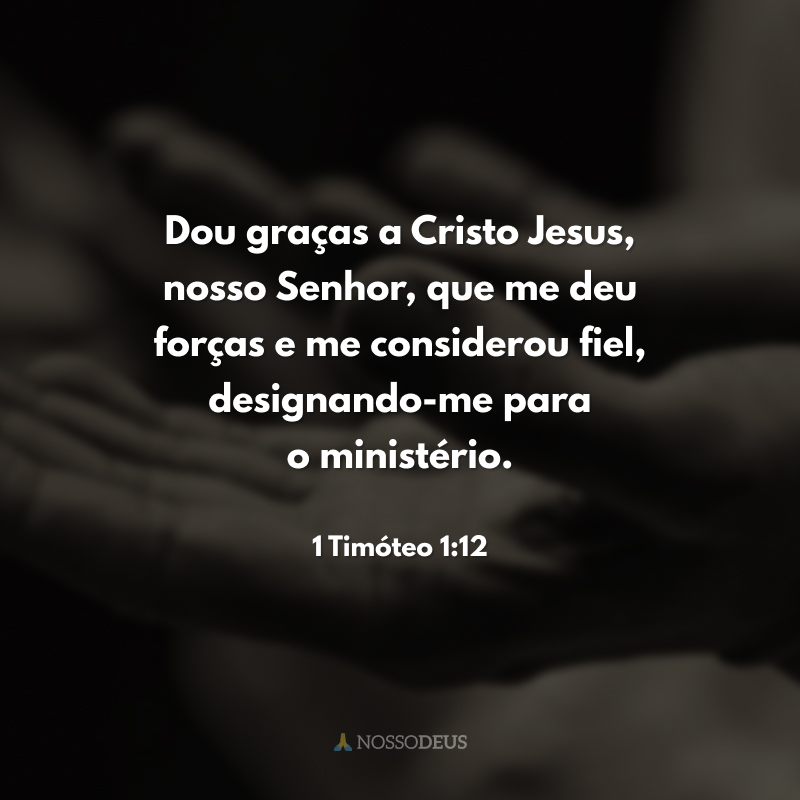 Dou graças a Cristo Jesus, nosso Senhor, que me deu forças e me considerou fiel, designando-me para o ministério.