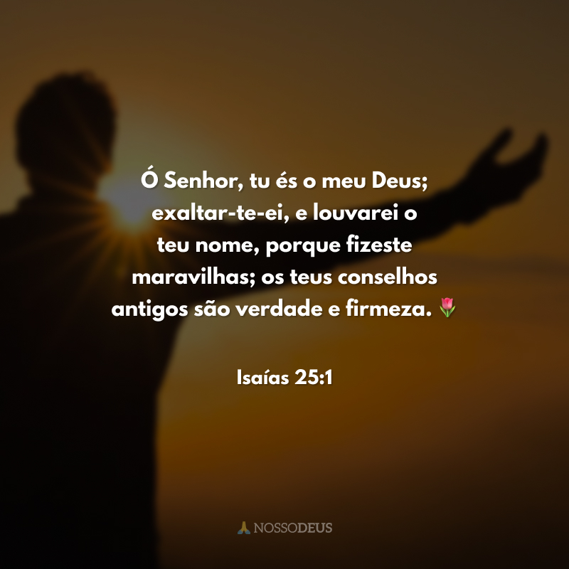 Ó Senhor, tu és o meu Deus; exaltar-te-ei, e louvarei o teu nome, porque fizeste maravilhas; os teus conselhos antigos são verdade e firmeza. 🌷