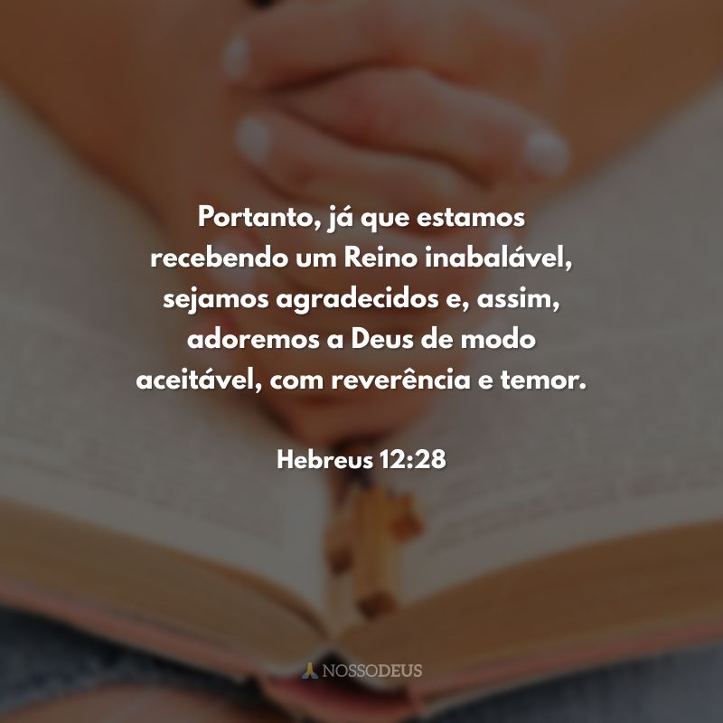 Portanto, já que estamos recebendo um Reino inabalável, sejamos agradecidos e, assim, adoremos a Deus de modo aceitável, com reverência e temor.