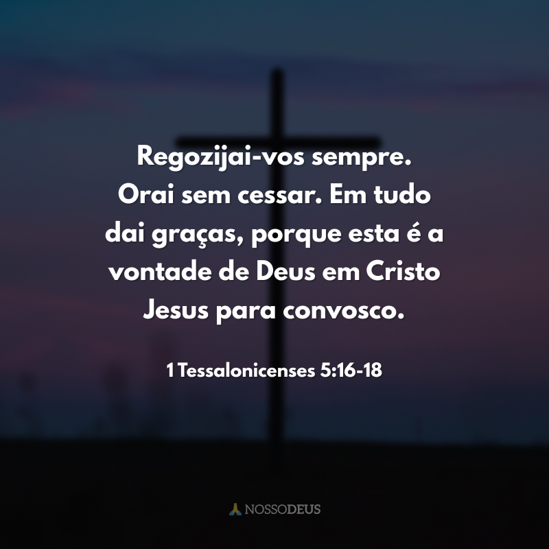 Regozijai-vos sempre. Orai sem cessar. Em tudo dai graças, porque esta é a vontade de Deus em Cristo Jesus para convosco.