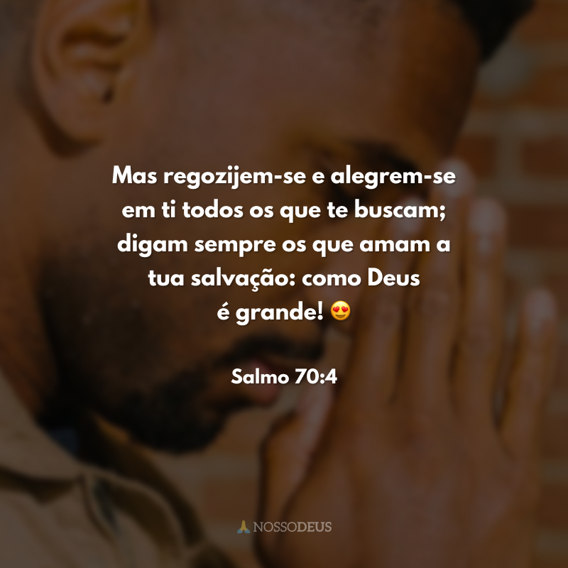 Mas regozijem-se e alegrem-se em ti todos os que te buscam; digam sempre os que amam a tua salvação: como Deus é grande! 😍