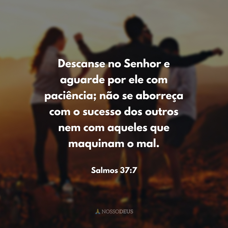 Descanse no Senhor e aguarde por ele com paciência; não se aborreça com o sucesso dos outros nem com aqueles que maquinam o mal.