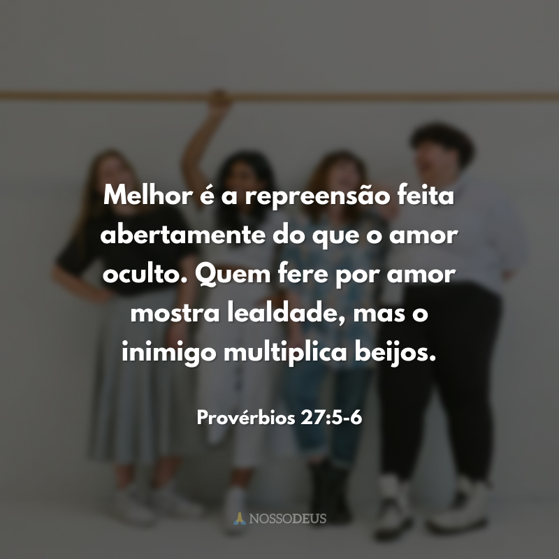 Melhor é a repreensão feita abertamente do que o amor oculto. Quem fere por amor mostra lealdade, mas o inimigo multiplica beijos.