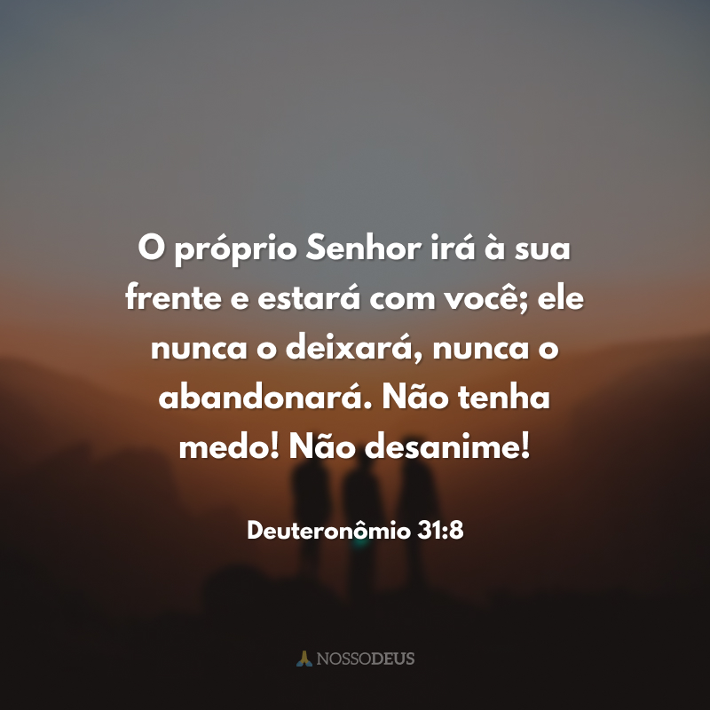 O próprio Senhor irá à sua frente e estará com você; ele nunca o deixará, nunca o abandonará. Não tenha medo! Não desanime!