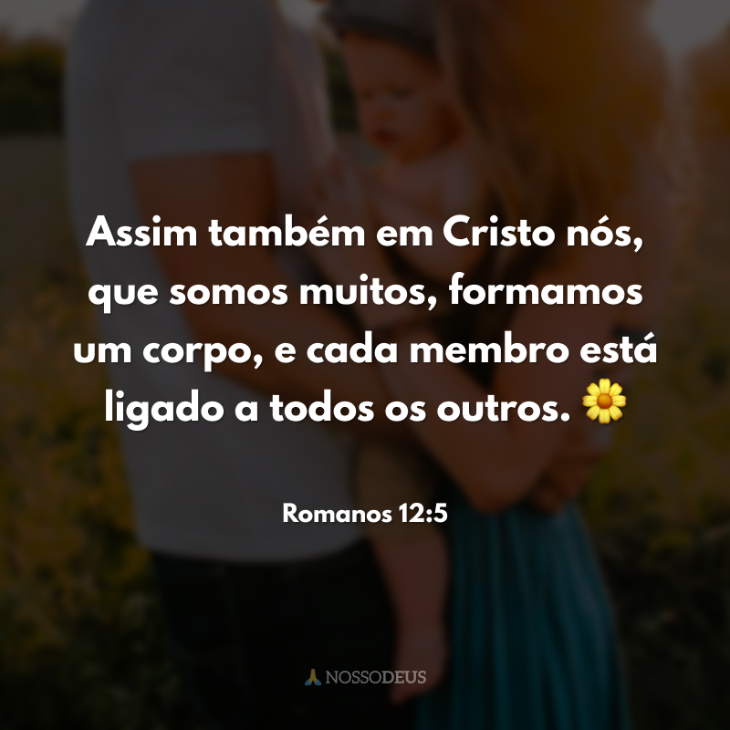 Assim também em Cristo nós, que somos muitos, formamos um corpo, e cada membro está ligado a todos os outros. 🌼