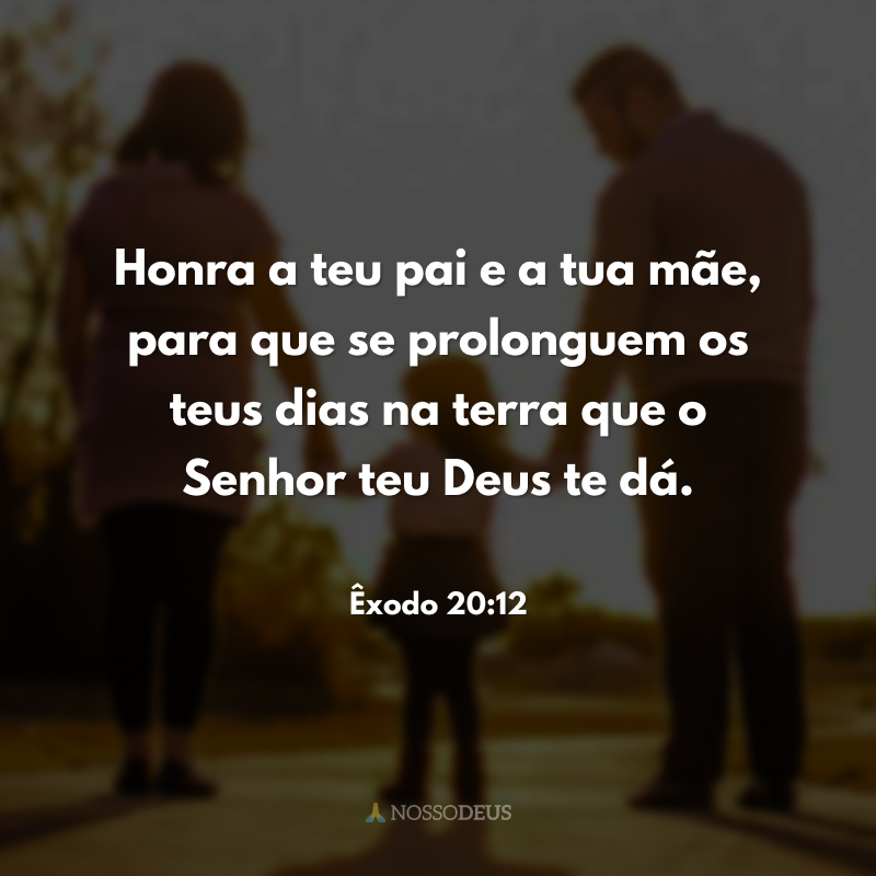 Honra a teu pai e a tua mãe, para que se prolonguem os teus dias na terra que o Senhor teu Deus te dá.