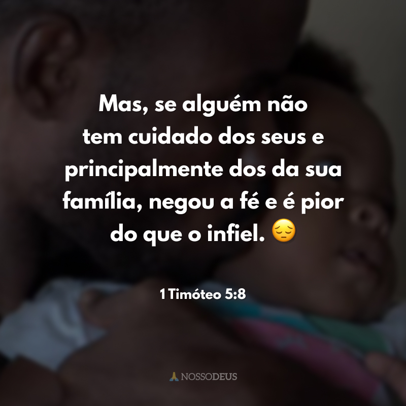 Mas, se alguém não tem cuidado dos seus e principalmente dos da sua família, negou a fé e é pior do que o infiel. 😔