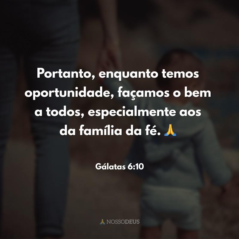 Portanto, enquanto temos oportunidade, façamos o bem a todos, especialmente aos da família da fé. 🙏