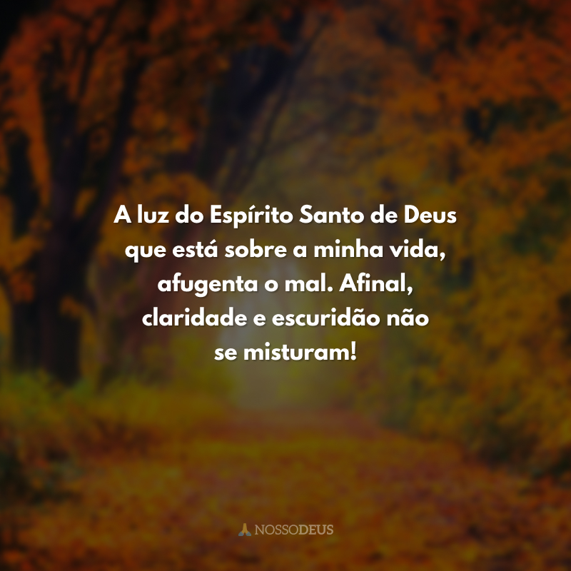 A luz do Espírito Santo de Deus que está sobre a minha vida, afugenta o mal. Afinal, claridade e escuridão não se misturam!