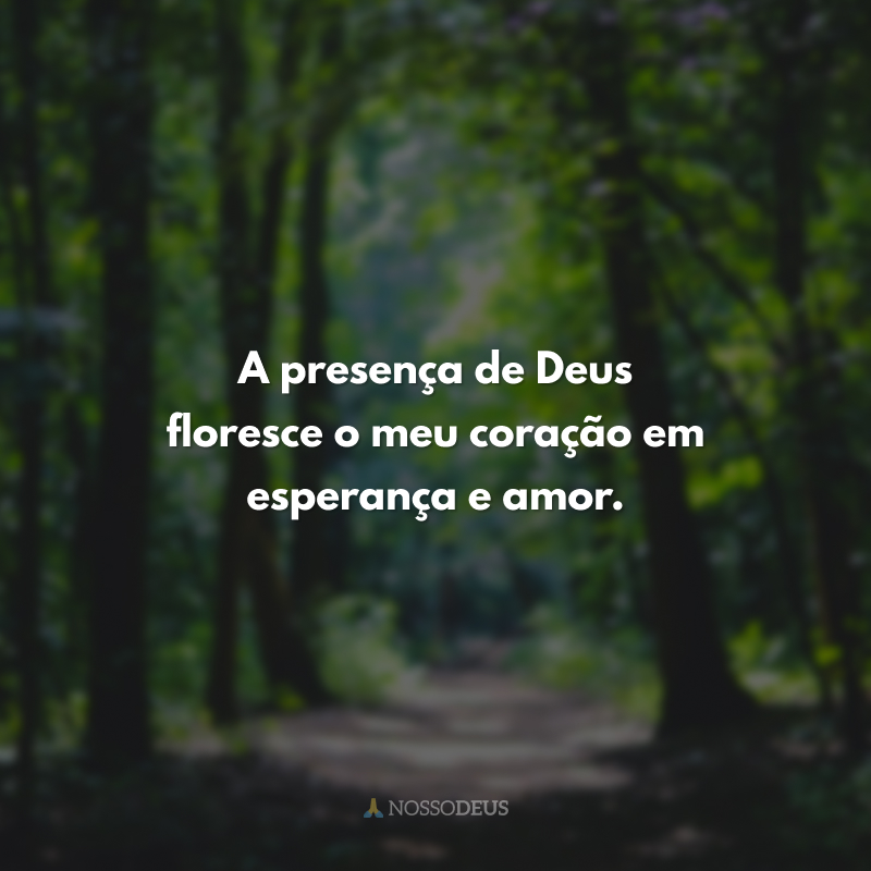 A presença de Deus floresce o meu coração em esperança e amor.