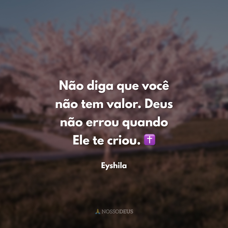 Não diga que você não tem valor. Deus não errou quando Ele te criou. ✝️