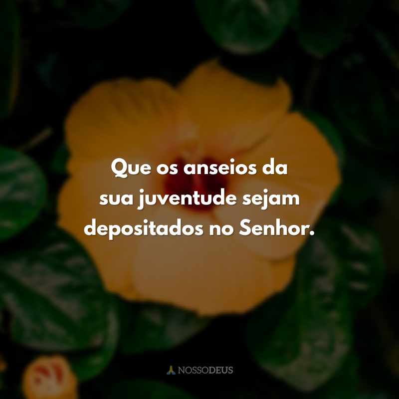 Que os anseios da sua juventude sejam depositados no Senhor.
