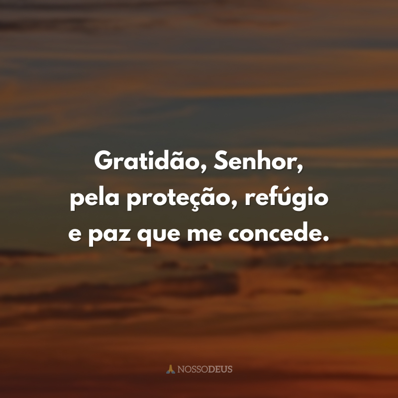 Gratidão, Senhor, pela proteção, refúgio e paz que me concede.