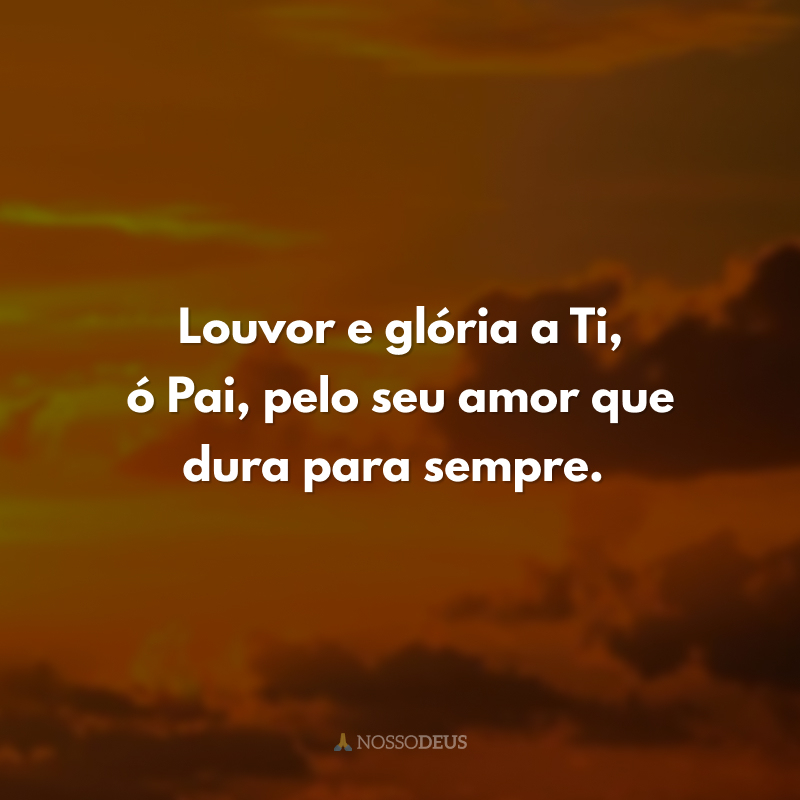 Louvor e glória a Ti, ó Pai, pelo seu amor que dura para sempre.