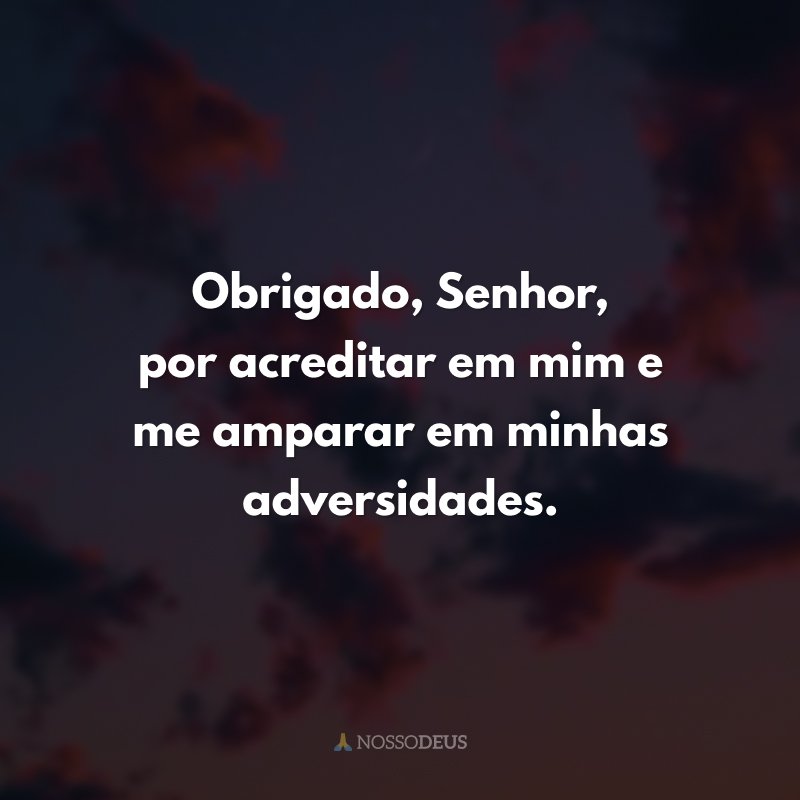 Obrigado, Senhor, por acreditar em mim e me amparar em minhas adversidades.
