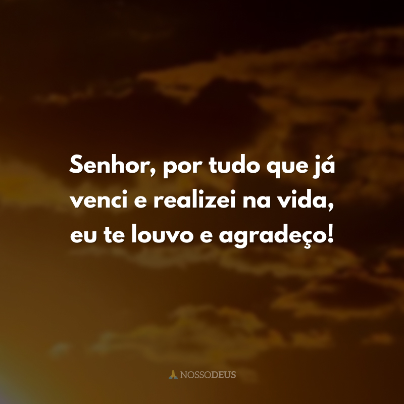 Senhor, por tudo que já venci e realizei na vida, eu te louvo e agradeço!