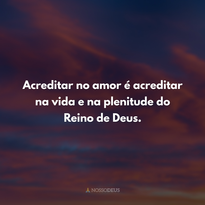 Acreditar no amor é acreditar na vida e na plenitude do Reino de Deus.