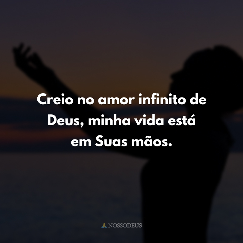 Creio no amor infinito de Deus, minha vida está em Suas mãos.