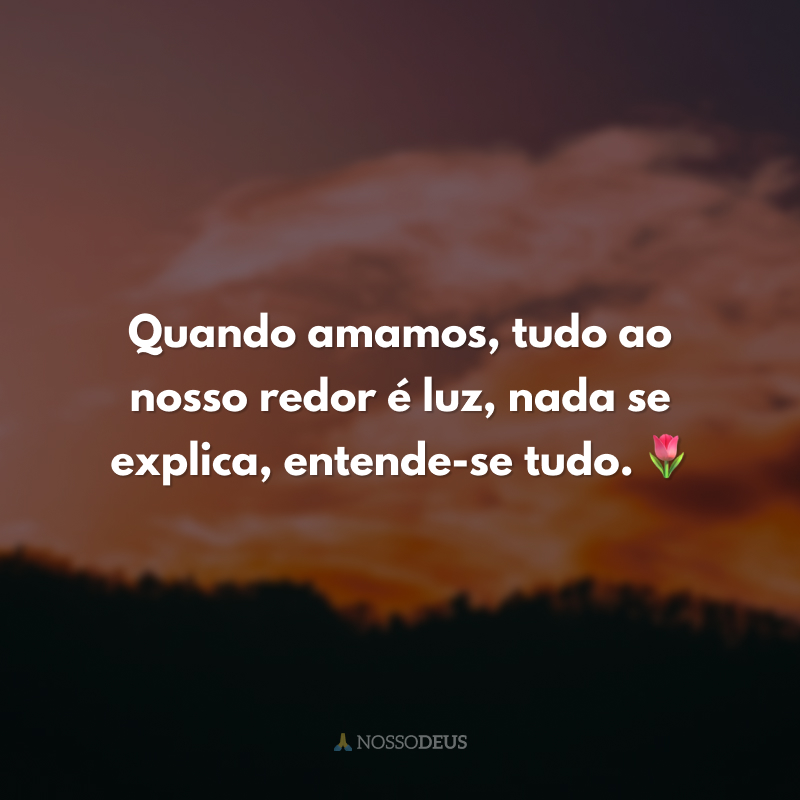 Quando amamos, tudo ao nosso redor é luz, nada se explica, entende-se tudo. 🌷