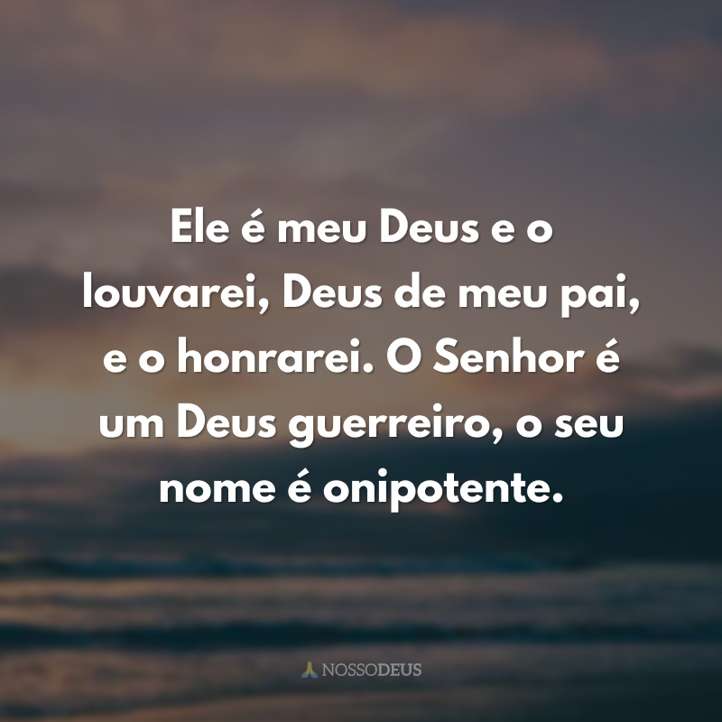 Ele é meu Deus e o louvarei, Deus de meu pai, e o honrarei. O Senhor é um Deus guerreiro, o seu nome é onipotente.