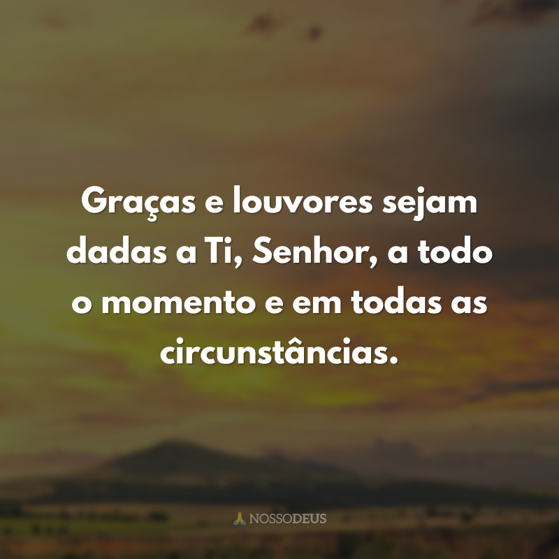 Graças e louvores sejam dadas a Ti, Senhor, a todo o momento e em todas as circunstâncias.