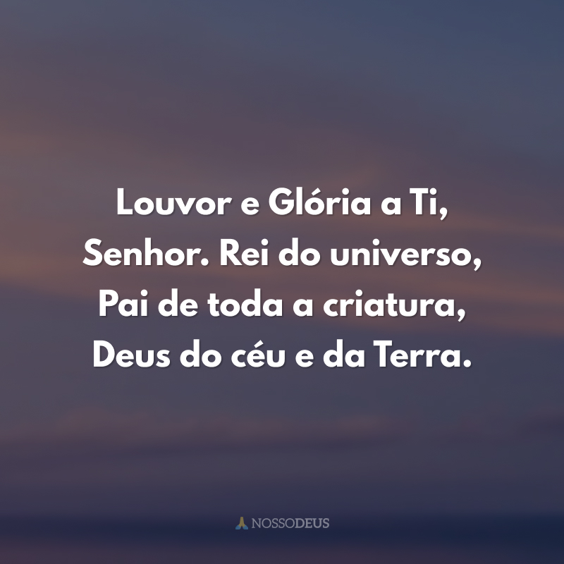 Louvor e Glória a Ti, Senhor. Rei do universo, Pai de toda a criatura, Deus do céu e da Terra.