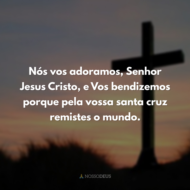 Nós vos adoramos, Senhor Jesus Cristo, e Vos bendizemos porque pela vossa santa cruz remistes o mundo.