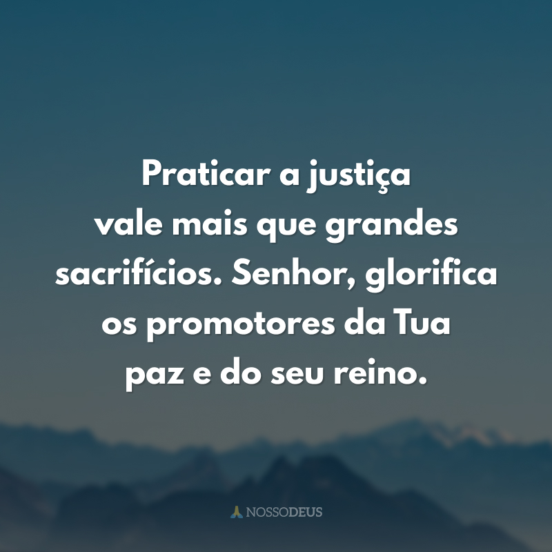 Praticar a justiça vale mais que grandes sacrifícios. Senhor, glorifica os promotores da Tua paz e do seu reino.